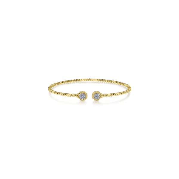 Front - Yellow Gold Bujukan Split Cuff Bracelet with Diamond Pavé Hexagon Caps