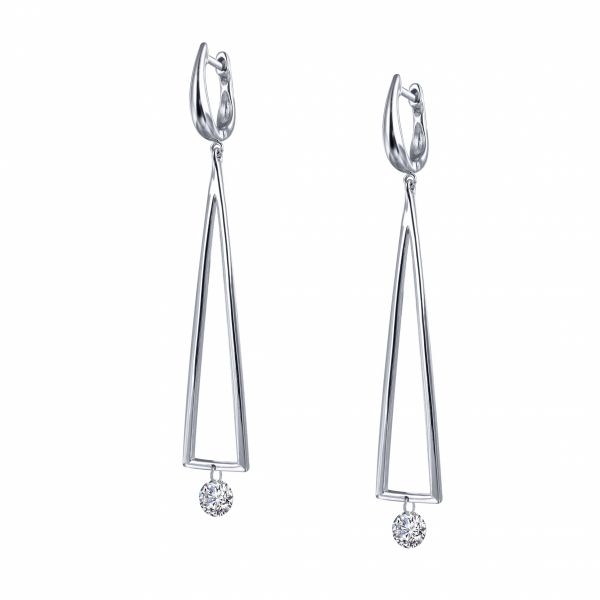 3. Geometric CZ Dangle Huggie Hoop Earrings, Sterling Silver,