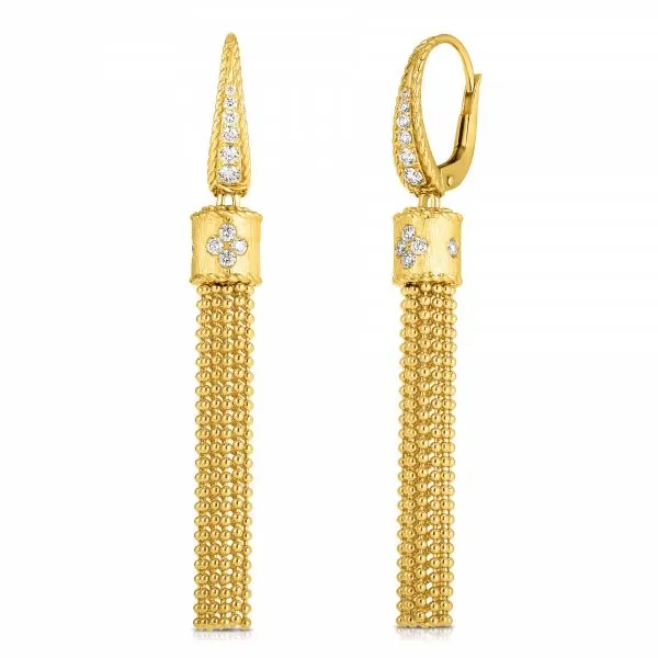 (304) 599-6981Princess Tassel Earrings With Diamonds in Yellow Gold